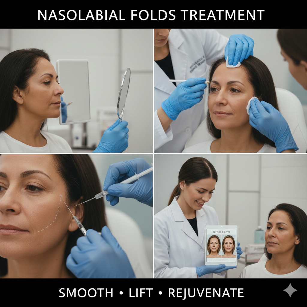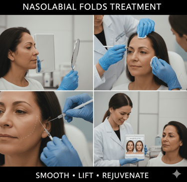 Nasolabial lines (also called smile lines or laugh lines) are the folds that run from the sides of the nose to the corners of the mouth. They are a natural part of facial expression but can become deeper and more noticeable with age, giving the face a tired or aged appearance.